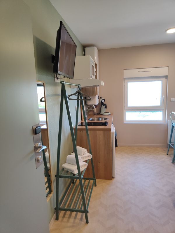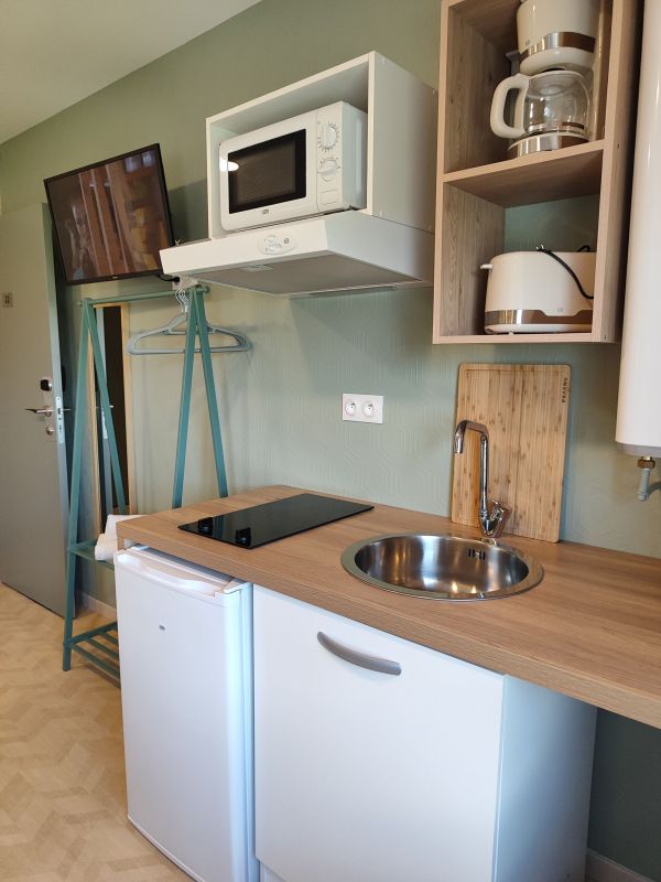 Nous mettons à votre disposition le wifi gratuit, un téléviseur à écran plat avec chaînes numériques, une kitchenette équipée avec vaisselle, micro onde, cafetière (senséo et filtre), plaques chauffantes, bouilloire et grille pain (Liste complète). Vous disposez d'une salle de bain avec wc, douche, sèche cheveux et produits de toilette.